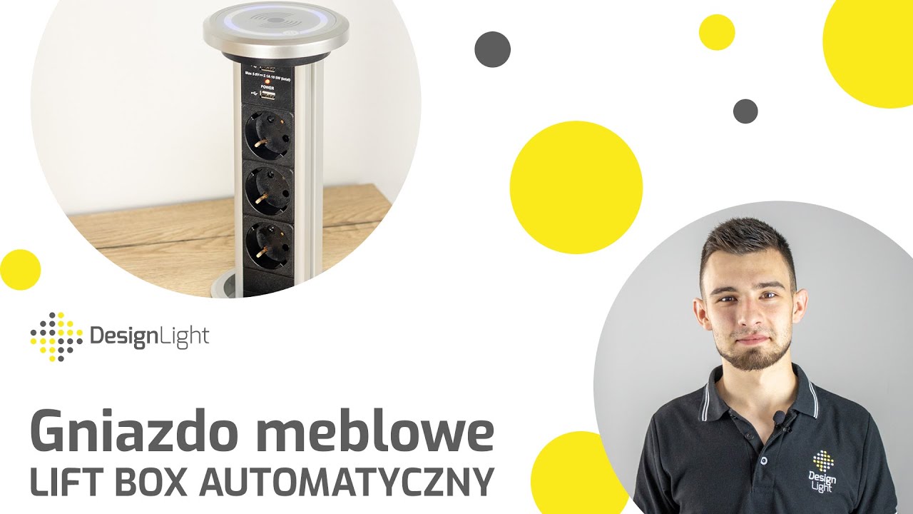 LIFTBOX od firmy DESIGN LIGHT to nowoczesne gniazdo meblowe wyposażone w ładowarkę indukcyjną, co umożliwia bezprzewodowe ładowanie urządzeń. Znajdzie zastosowanie w salach konferencyjnych, przy stołach kuchennych lub w przestrzeni biurowej.
