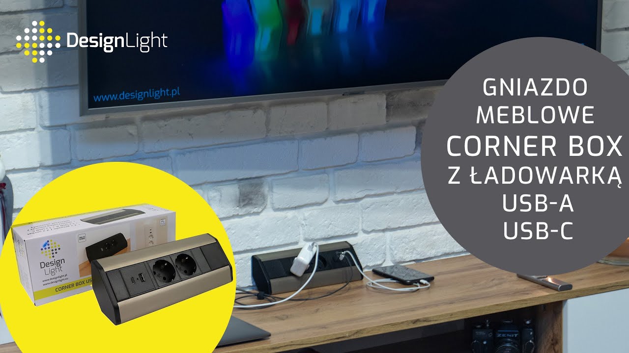 Model gniazda CORNERBOX to wygodne rozwiązanie, które zapewnia dostęp do różnych źródeł zasilania w jednym miejscu. Wyposażone zostało w dwa gniazda 230V typu schuko oraz wejście USB typu A i C. Gniazda USB pozwalają na szybkie i bezpieczne naładowanie telefonu, smartwacha lub tabletu bez potrzeby wpinania do kontaktu tradycyjnej ładowarki z kablem.