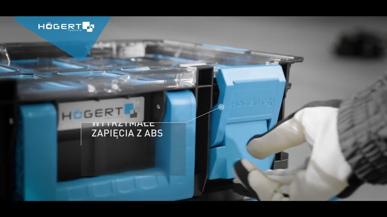 Organizer HOGERT HT7G503 to wysokiej jakości skrzynka narzędziowa o dużej wytrzymałości. Wyposażona jest w wyjmowane kubeczki (8 sztuk), które umożliwiają przechowywanie drobnych narzędzi oraz akcesoriów. Maksymalna ładowność organizera wynosi 20 kg.